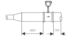 4. 测压孔和测温孔的设备规划。被测管道需求设备温度和压力变送器时,测压孔应设置在下流3-5D处,测温孔应设置在下流6-8D处,见图(七)。D为外表工称口径,单位:mm