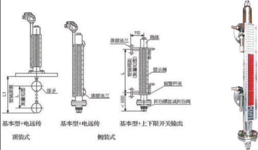 根据浮力原理,浮子在测量管内随液位的升降而上、下移动,浮子内的永久磁钢通过耦合作用,驱动红、白色翻柱翻转180°,液位上升时翻柱由白色转为红色,下降时由红色转为白色,从而实现液位指示。